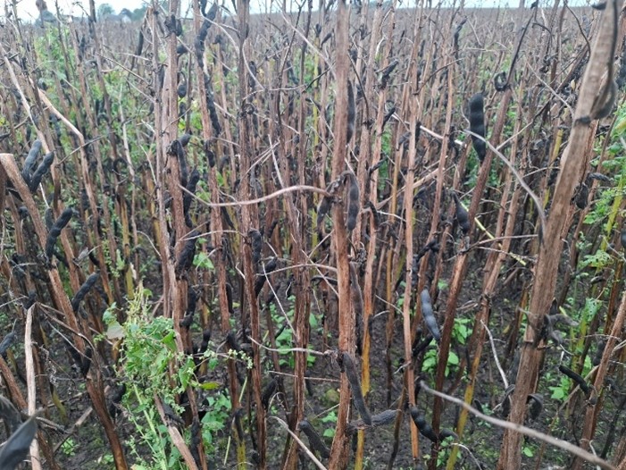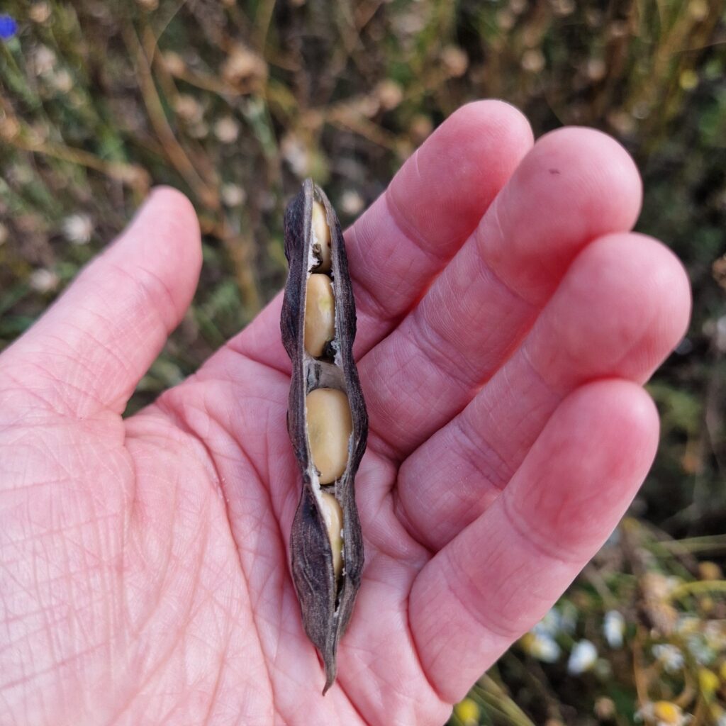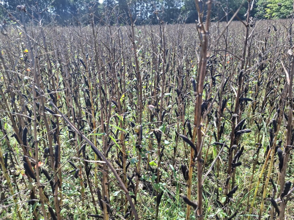 Billede 3: Sort bælg med brune, hårde bønner. Når 90 % af bælgene ser således ud, er marken klar til høst. Billede: Ninna Boesen