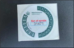 - Efter synet bliver sprederen registreret i en kontrolrapport, og der påsættes en mærkat med kontrolnummeret påtrykt